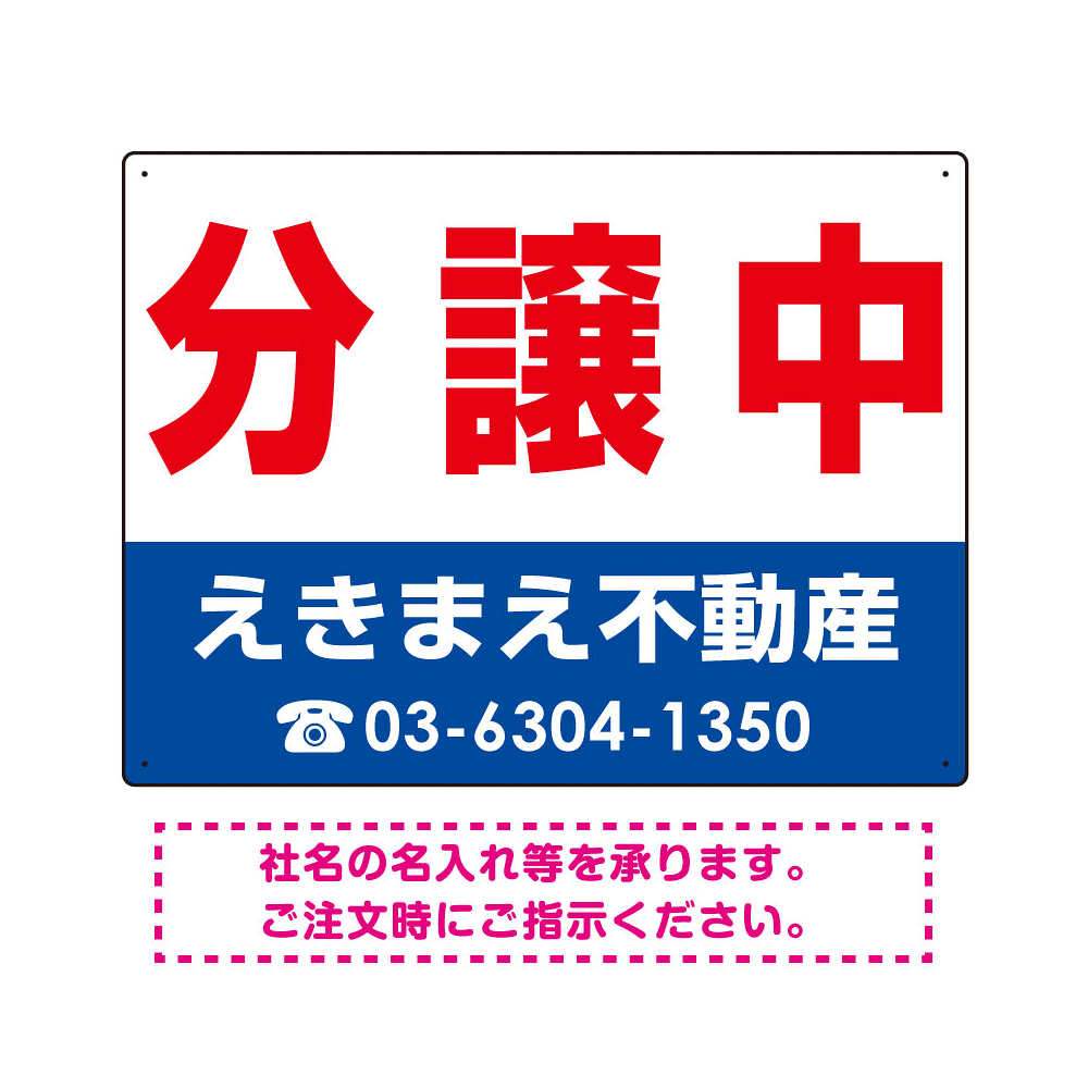 分譲中 オリジナル プレート看板 赤文字 W600×H450 エコユニボード (SP-SMD238-60x45U)