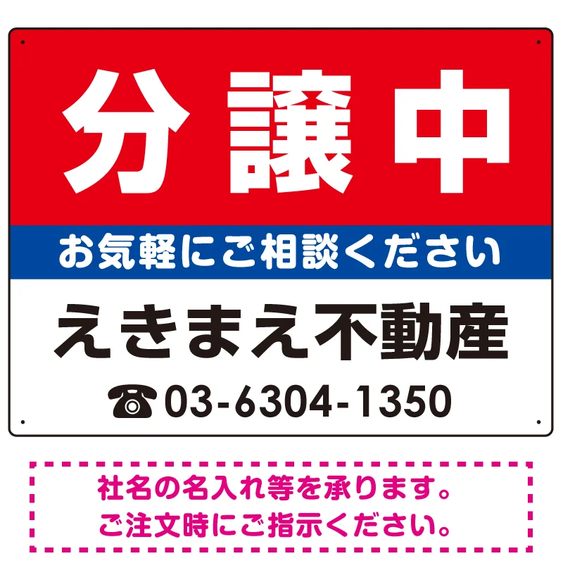 よくある質問:分譲中 オリジナル プレート看板 赤背景 W600×H450 アルミ複合板 (SP-SMD152-60x45A)