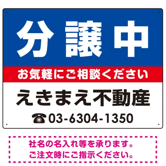 - 分譲中 オリジナル プレート看板 青背景 W600×H450 アルミ複合板 (SP-SMD194-60x45A)