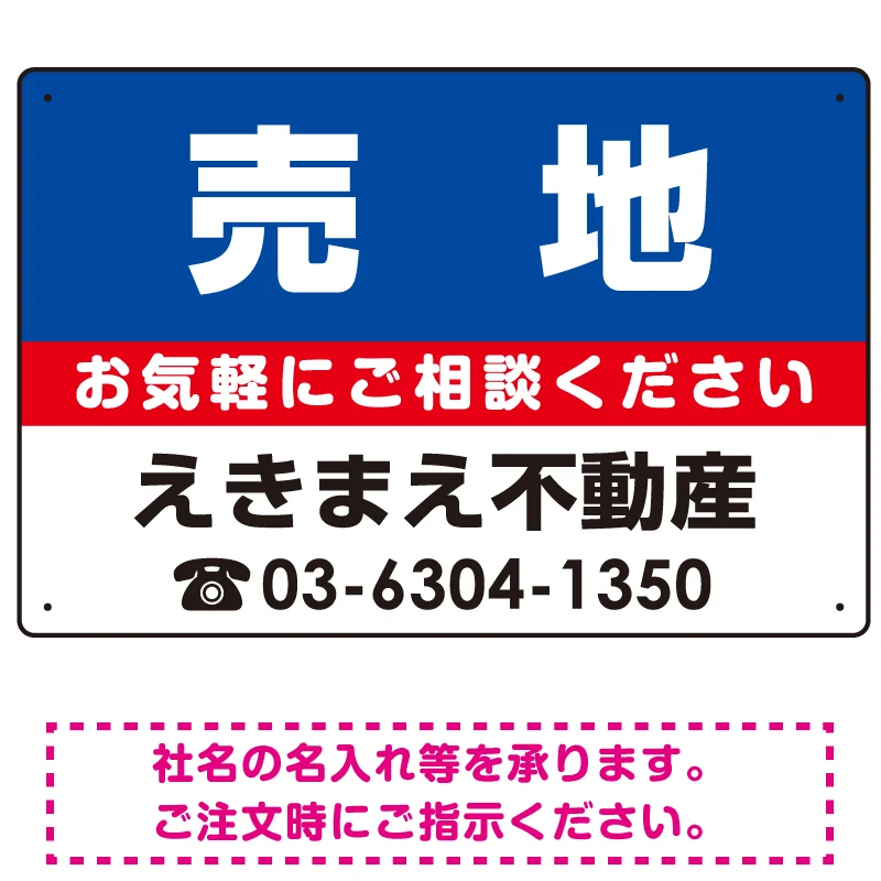 よくある質問:売地 オリジナル プレート看板 青背景 W450×H300 エコユニボード (SP-SMD195-45x30U)
