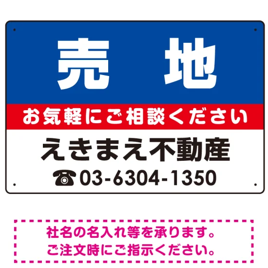 売地 オリジナル プレート看板 青背景 W450×H300 エコユニボード (SP-SMD195-45x30U)