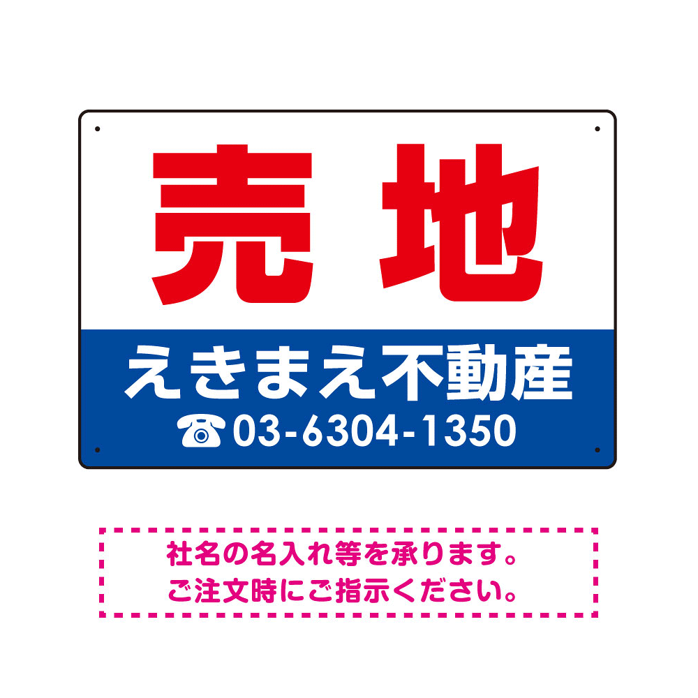 売地 オリジナル プレート看板 赤文字 W450×H300 アルミ複合板 (SP-SMD240-45x30A)