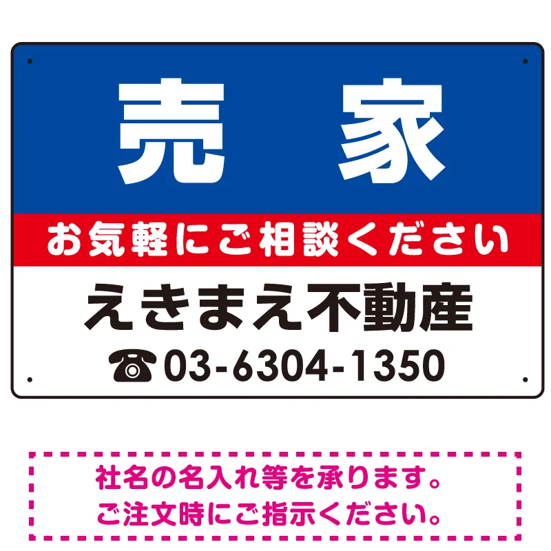 「売家 オリジナル プレート看板 青背景 W450×H300 エコユニボード (SP-SMD196-45x30U)」の導入をご検討中ですか? 大量注文・複数台のご検討に応じたお見積りのご相談、最短納期や送料、仕様・サイズの確認など、 不動産定番デザインプレート看板選びをまとめてサポートいたします。