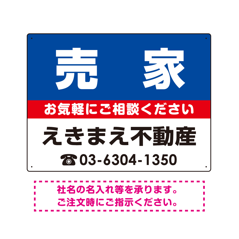 売家 オリジナル プレート看板 青背景 W600×H450 エコユニボード (SP-SMD196-60x45U)