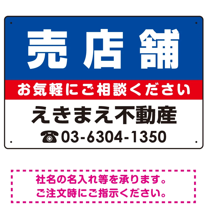 「売店舗 オリジナル プレート看板 青背景 W450×H300 エコユニボード (SP-SMD197-45x30U)」の導入をご検討中ですか? 大量注文・複数台のご検討に応じたお見積りのご相談、最短納期や送料、仕様・サイズの確認など、 不動産定番デザインプレート看板選びをまとめてサポートいたします。