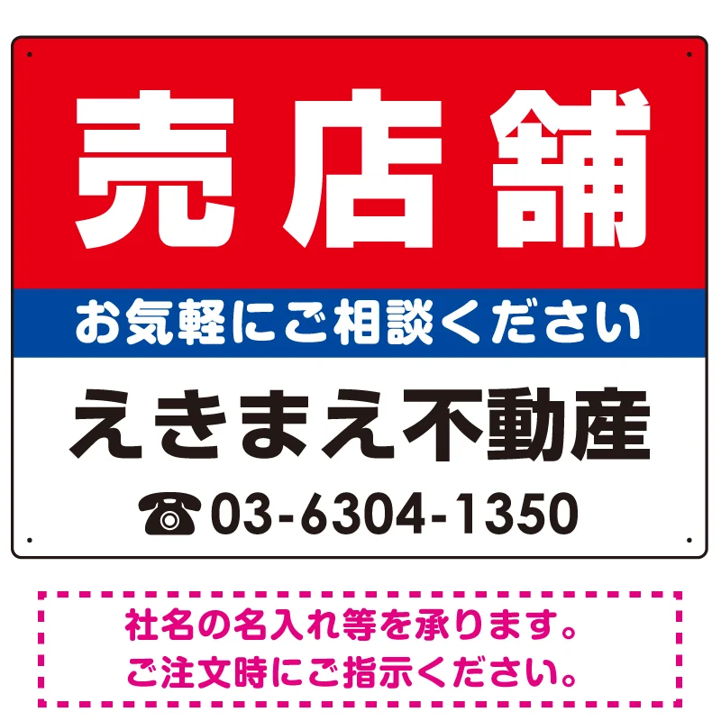 表示内容「売店舗」不動産向けプレート看板。