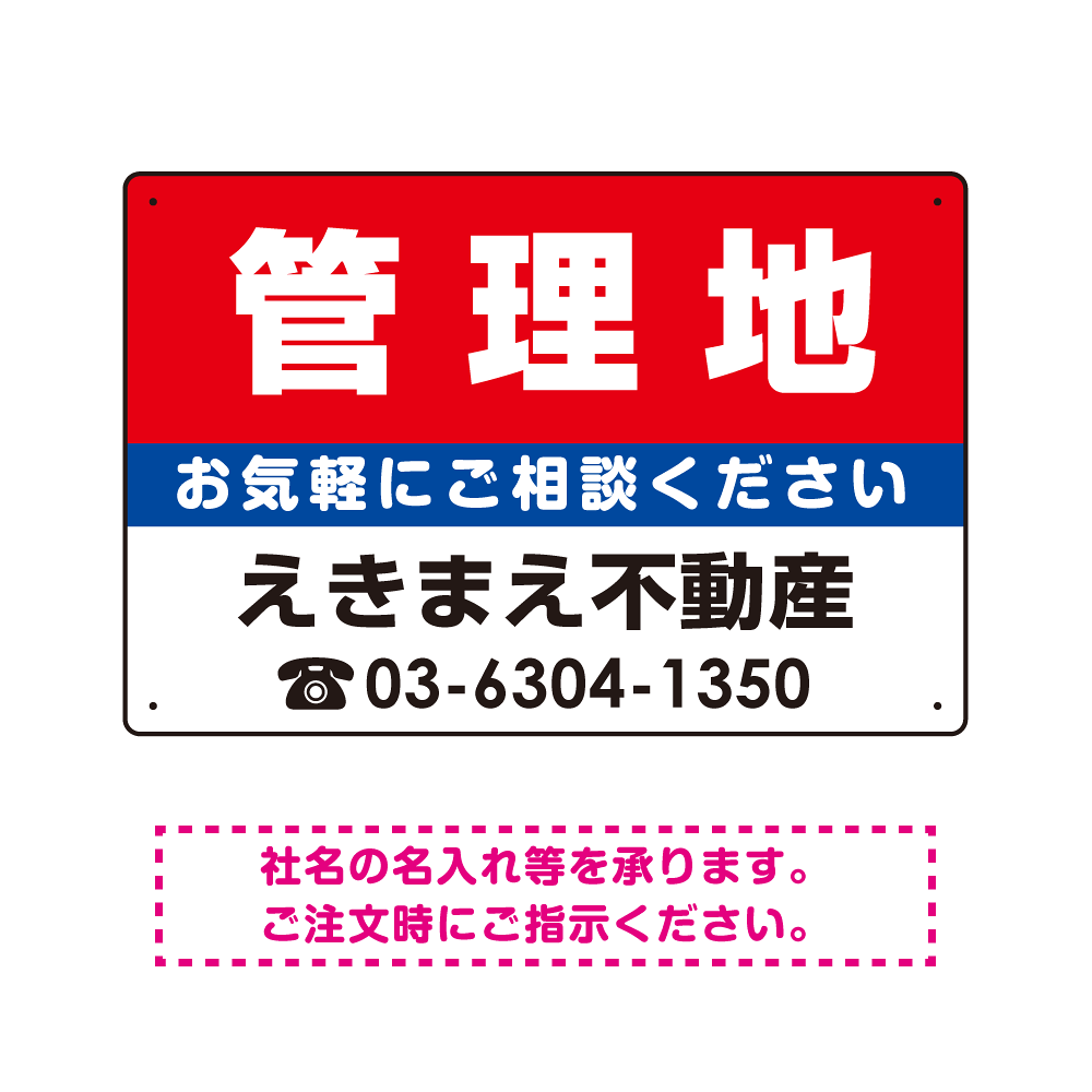 管理地 オリジナル プレート看板 赤背景 W450×H300 エコユニボード (SP-SMD156-45x30U)