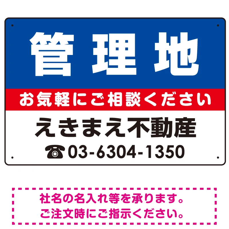 管理地 オリジナル プレート看板 青背景 W450×H300 エコユニボード (SP-SMD198-45x30U)