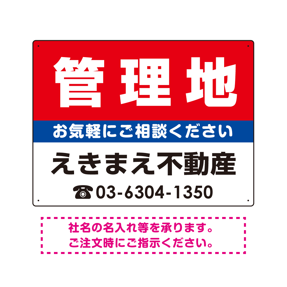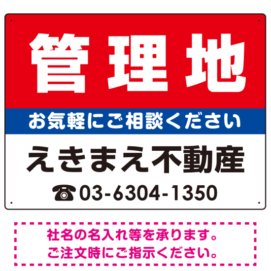 管理地 オリジナル プレート看板 赤背景 W600×H450 エコユニボード (SP-SMD156-60x45U)