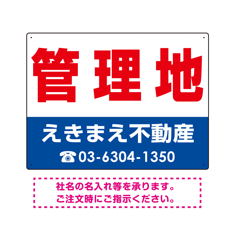 管理地 オリジナル プレート看板 赤文字 W600×H450 エコユニボード (SP-SMD242-60x45U)