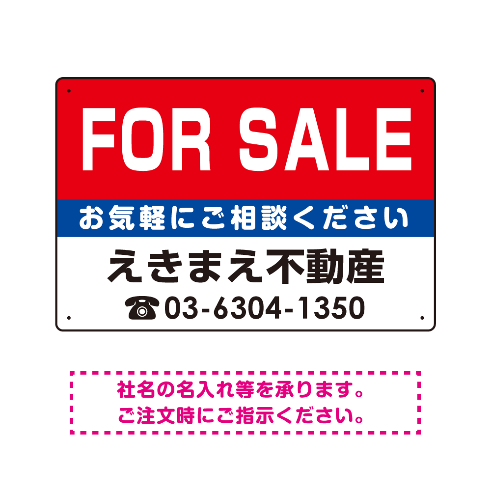 表示内容「FOR SALE」不動産向けプレート看板。