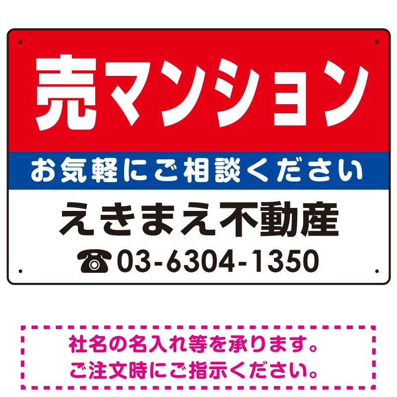 よくある質問:売マンション オリジナル プレート看板 赤背景 W450×H300 エコユニボード (SP-SMD158-45x30U)