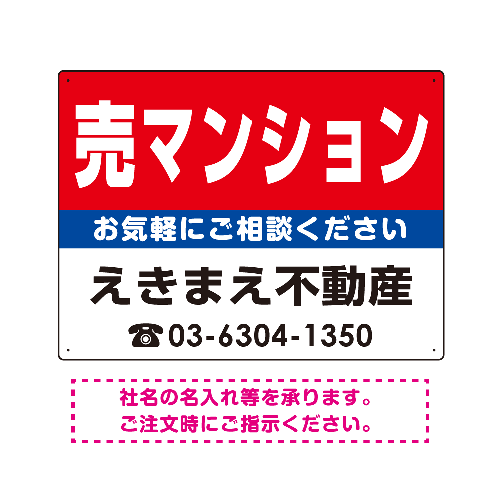 売マンション オリジナル プレート看板 赤背景 W600×H450 エコユニボード (SP-SMD158-60x45U)