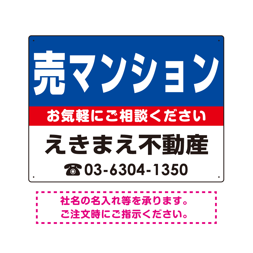 売マンション オリジナル プレート看板 青背景 W600×H450 エコユニボード (SP-SMD200-60x45U)