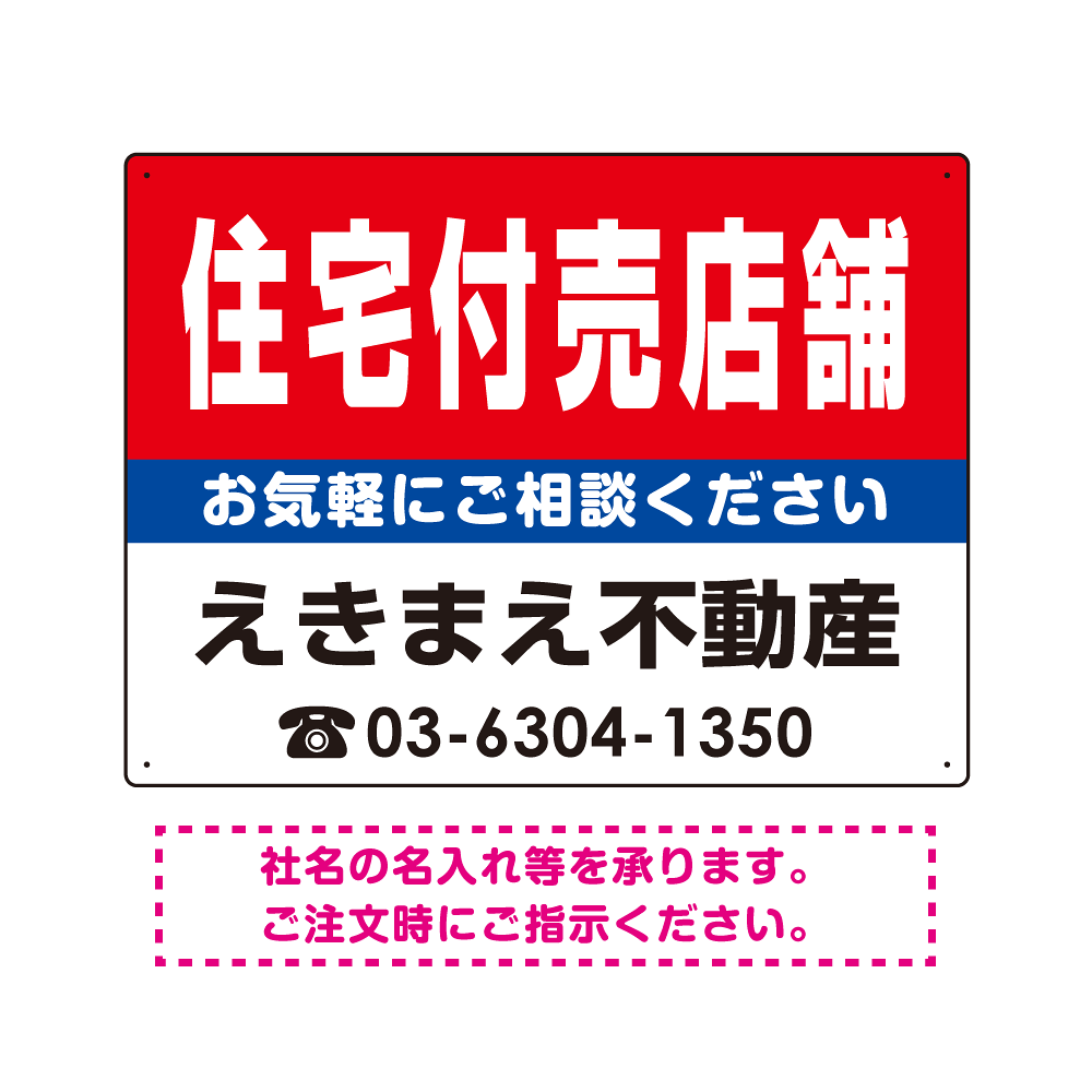 表示内容「住宅付売店舗」不動産向けプレート看板。
