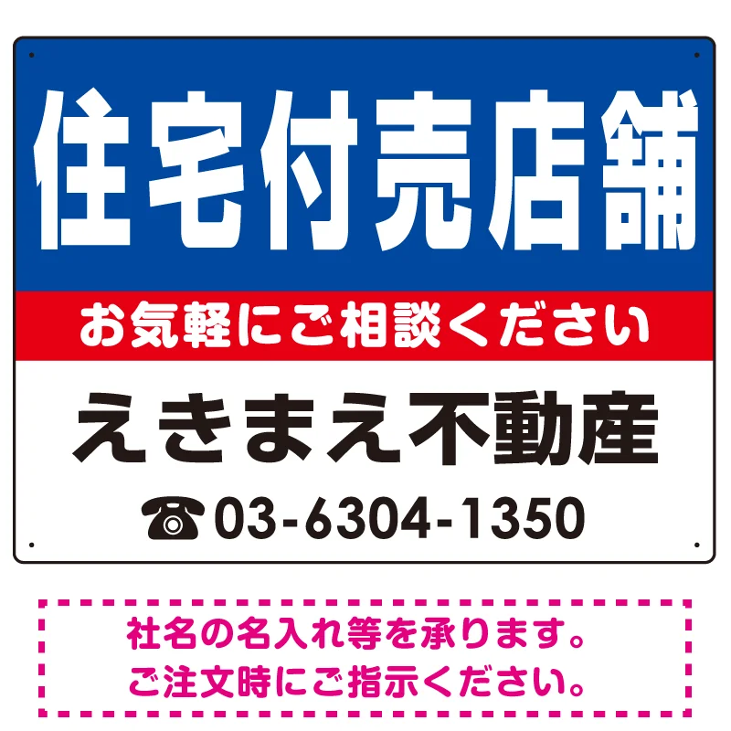 表示内容「住宅付売店舗」不動産向けプレート看板。