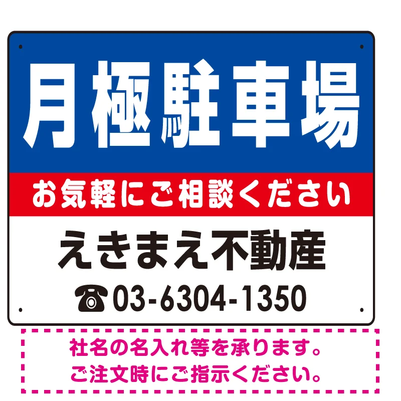 よくある質問:月極駐車場 オリジナル プレート看板 青背景 W450×H300 アルミ複合板 (SP-SMD205-45x30A)