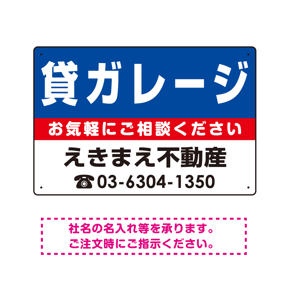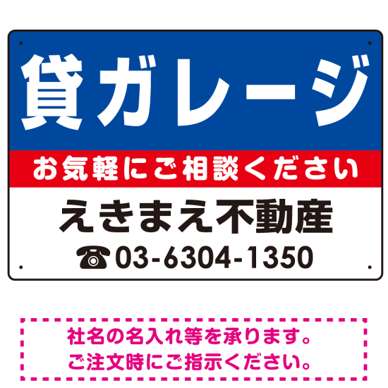 貸ガレージ オリジナル プレート看板 青背景 W450×H300 エコユニボード (SP-SMD206-45x30U)