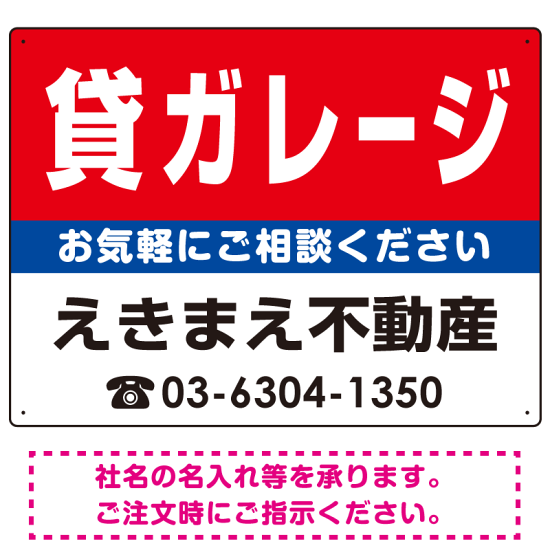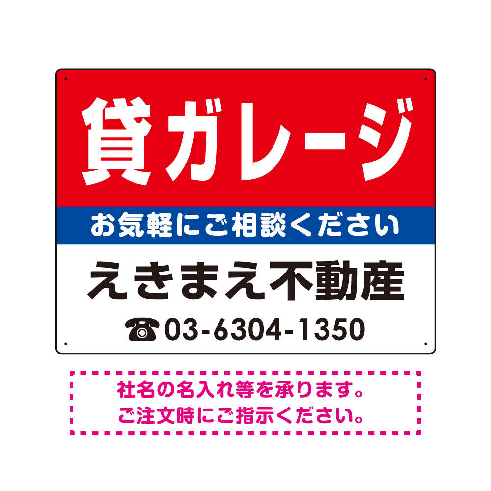 貸ガレージ オリジナル プレート看板 赤背景 W600×H450 エコユニボード (SP-SMD164-60x45U)
