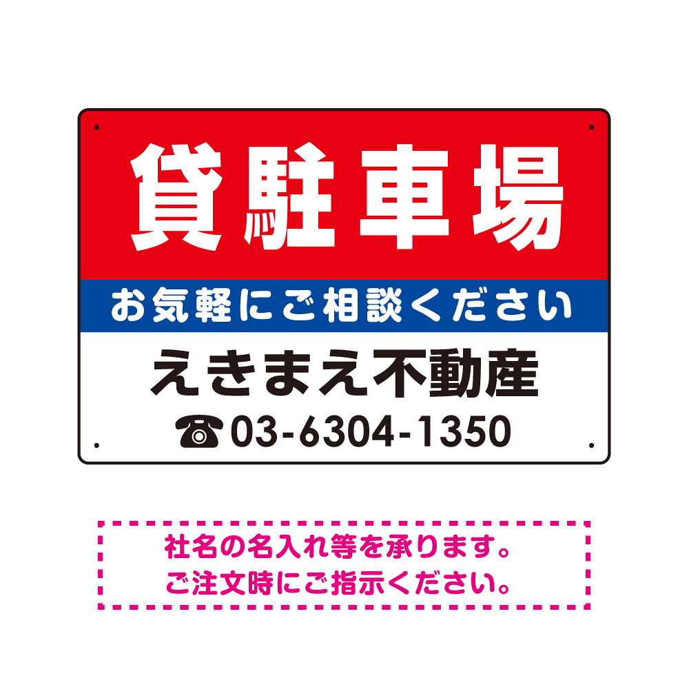 貸駐車場 オリジナル プレート看板 赤背景 W450×H300 エコユニボード (SP-SMD165-45x30U)