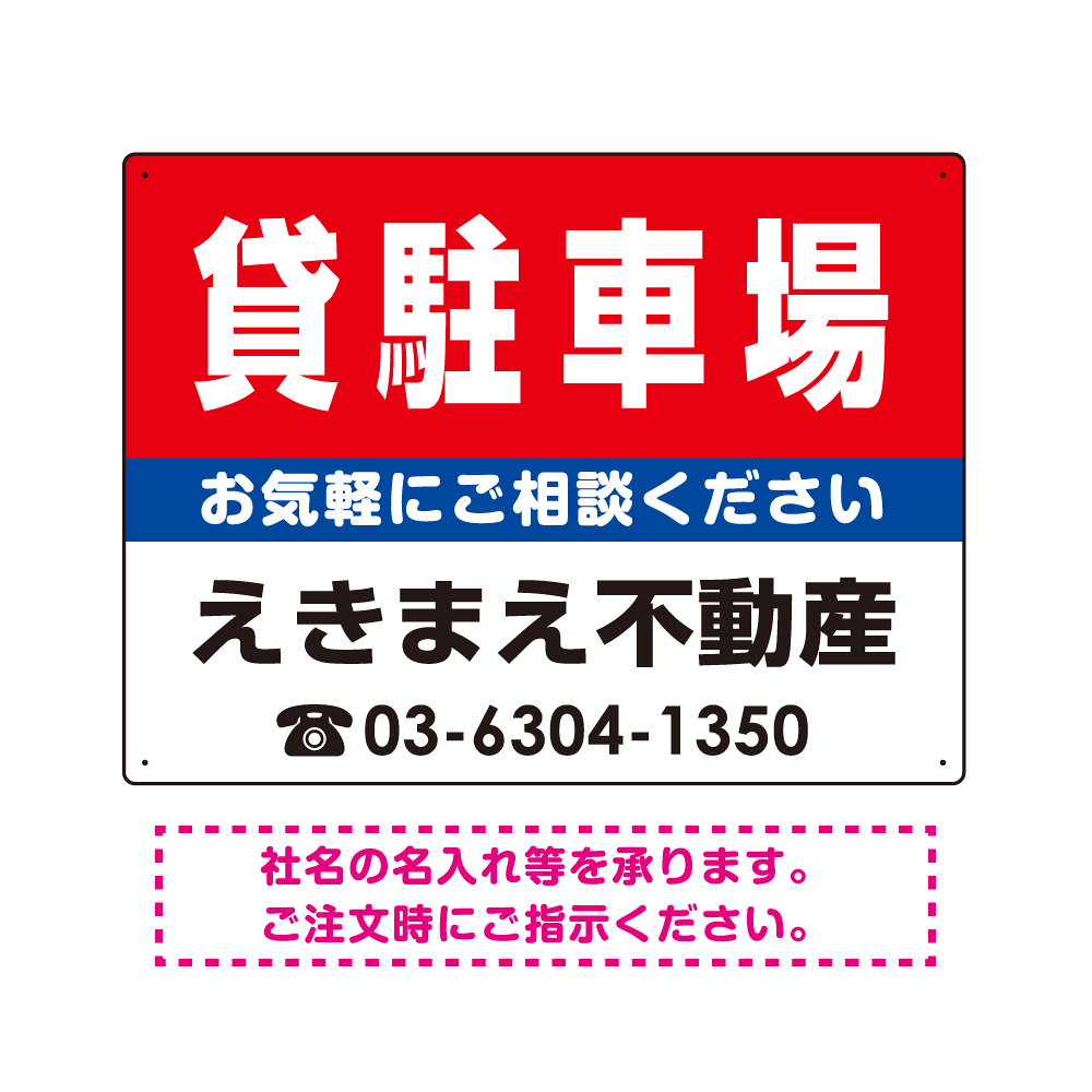 貸駐車場 オリジナル プレート看板 赤背景 W600×H450 エコユニボード (SP-SMD165-60x45U)