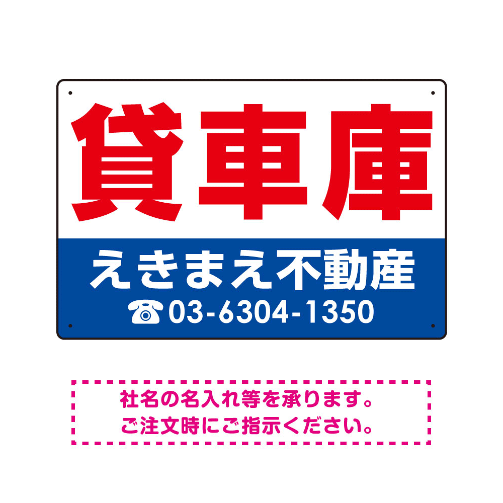 表示内容「貸車庫」不動産向けプレート看板。