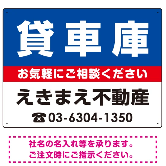 貸車庫 オリジナル プレート看板 青背景 W600×H450 エコユニボード (SP-SMD208-60x45U)