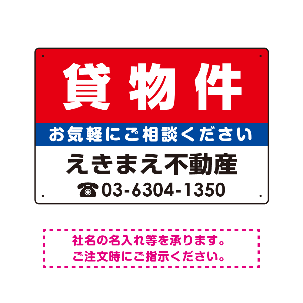 貸物件 オリジナル プレート看板 赤背景 W450×H300 エコユニボード (SP-SMD167-45x30U)