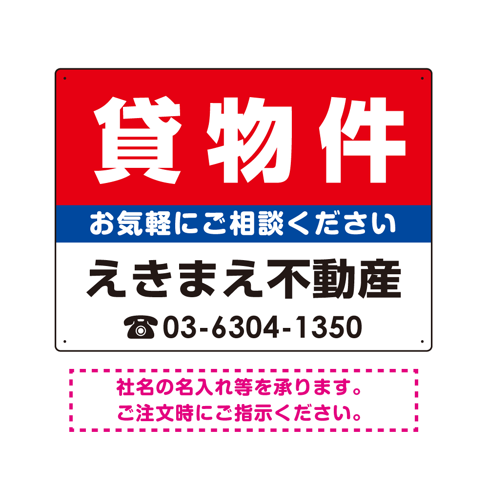 貸物件 オリジナル プレート看板 赤背景 W600×H450 エコユニボード (SP-SMD167-60x45U)