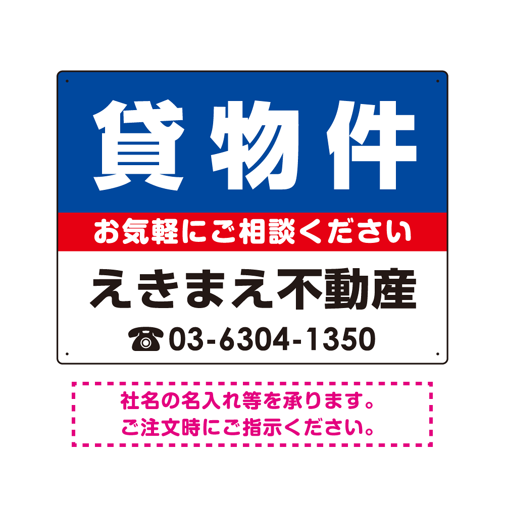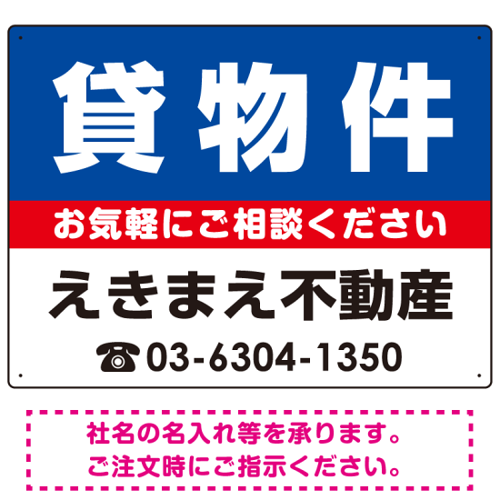 貸物件 オリジナル プレート看板 青背景 W600×H450 エコユニボード (SP-SMD209-60x45U)