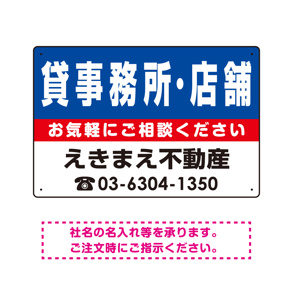 貸事務所・店舗 オリジナル プレート看板 青背景 W450×H300 エコユニボード (SP-SMD211-45x30U)