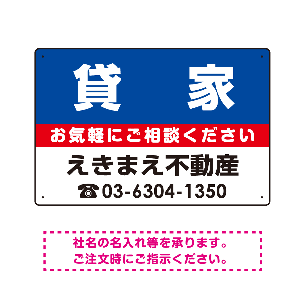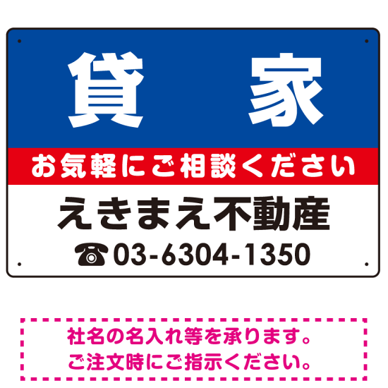 貸家 オリジナル プレート看板 青背景 W450×H300 エコユニボード (SP-SMD212-45x30U)