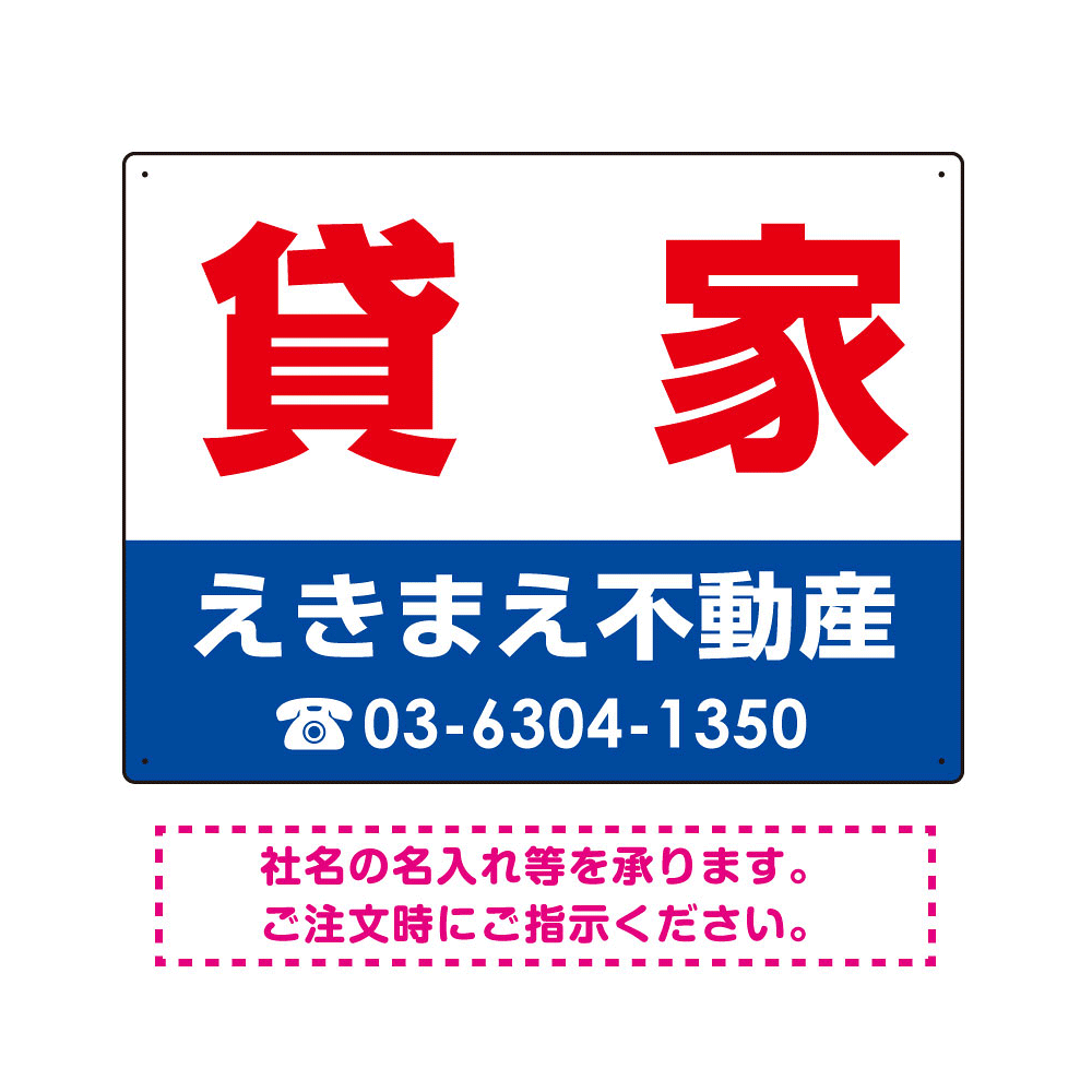 貸家 オリジナル プレート看板 赤文字 W600×H450 エコユニボード (SP-SMD255-60x45U)