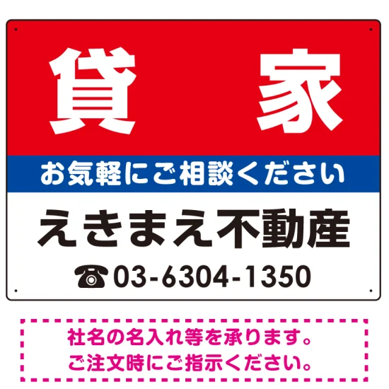 - 貸家 オリジナル プレート看板 赤背景 W600×H450 アルミ複合板 (SP-SMD170-60x45A)