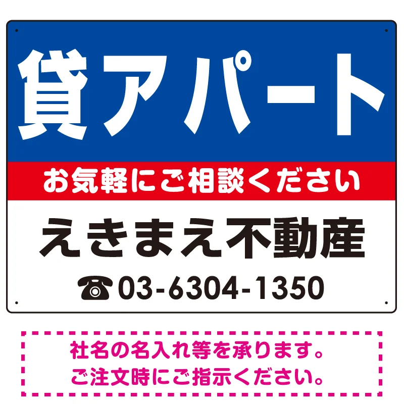 貸アパート オリジナル プレート看板 青背景 W600×H450 アルミ複合板 (SP-SMD213-60x45A) の商品詳細