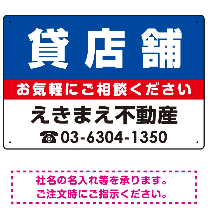 貸店舗 オリジナル プレート看板 青背景 W450×H300 アルミ複合板 (SP-SMD214-45x30A) の商品詳細