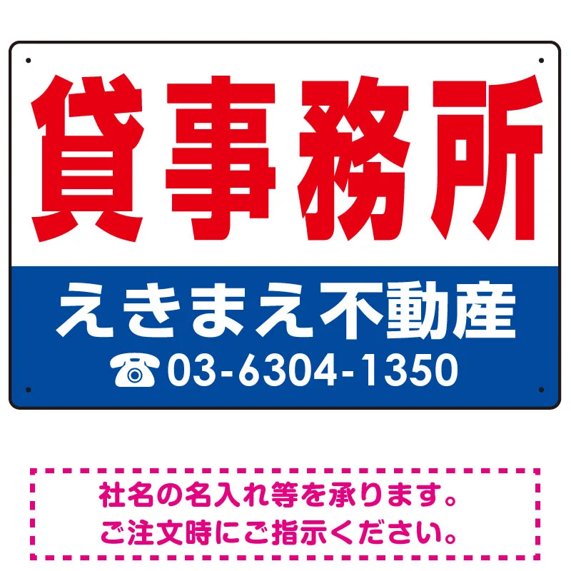 表示内容「貸事務所」不動産向けプレート看板。