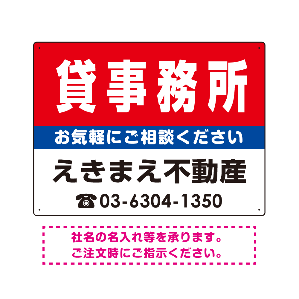 貸事務所 オリジナル プレート看板 赤背景 W600×H450 エコユニボード (SP-SMD173-60x45U)