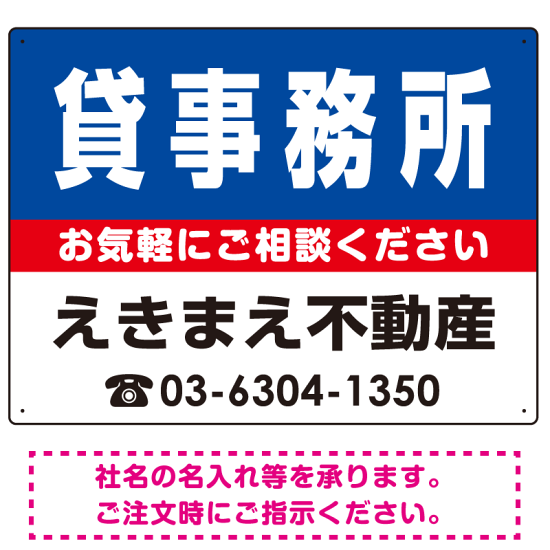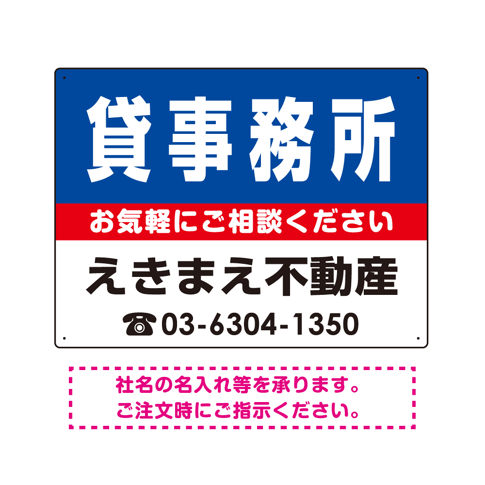 貸事務所 オリジナル プレート看板 青背景 W600×H450 エコユニボード (SP-SMD215-60x45U)