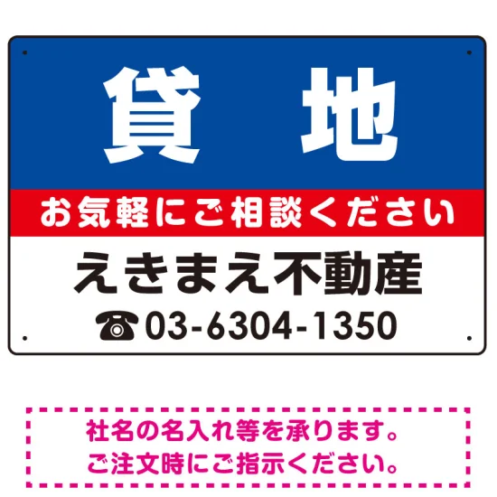- 貸地 オリジナル プレート看板 青背景 W450×H300 アルミ複合板 (SP-SMD216-45x30A)