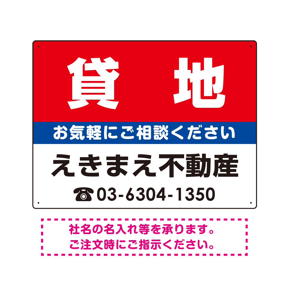 商品説明:貸地 オリジナル プレート看板 赤背景 W600×H450 エコユニボード (SP-SMD174-60x45U)