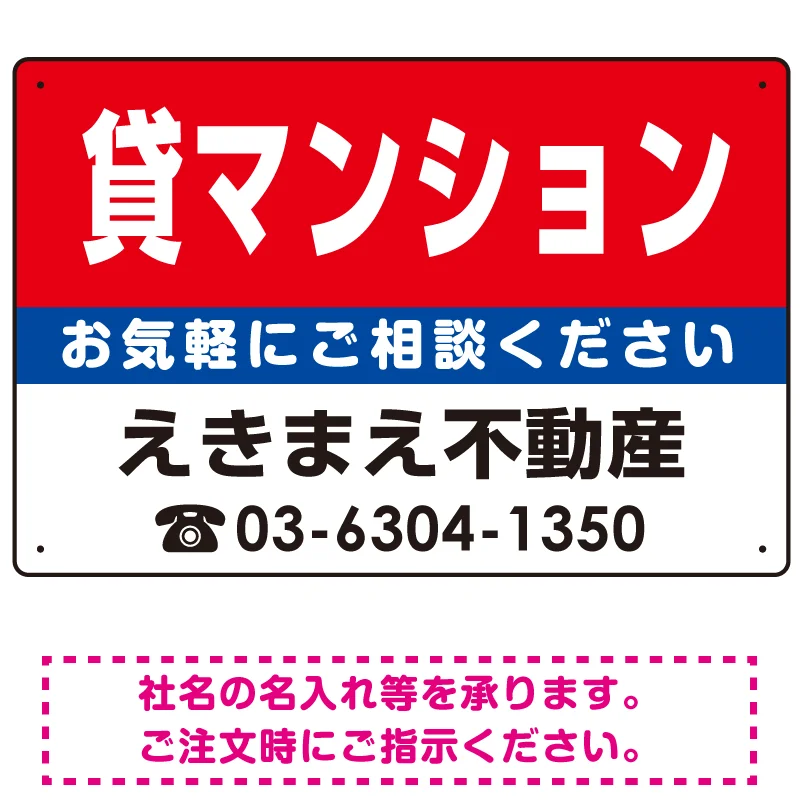 貸マンション オリジナル プレート看板 赤背景 W450×H300 エコユニボード (SP-SMD175-45x30U)