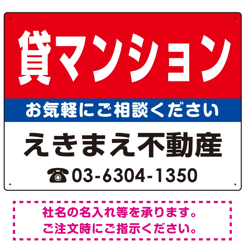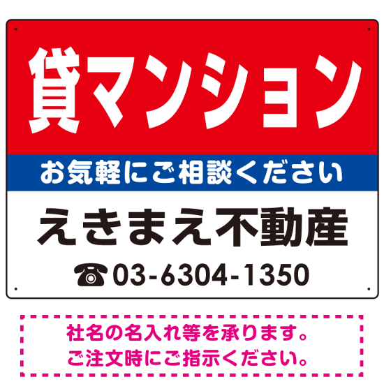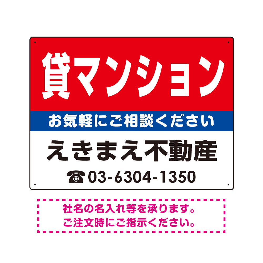 貸マンション オリジナル プレート看板 赤背景 W600×H450 エコユニボード (SP-SMD175-60x45U)