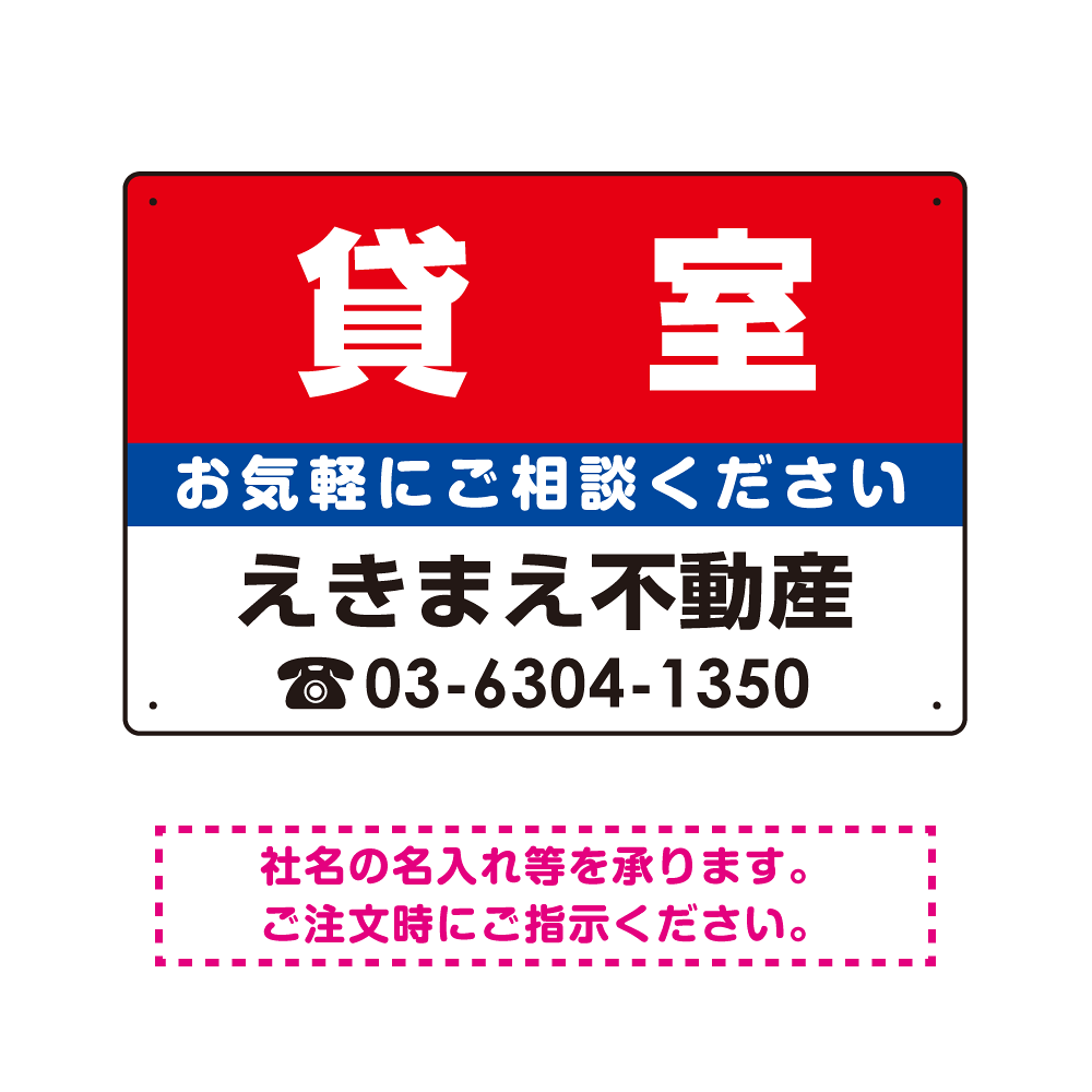 商品説明:貸室 オリジナル プレート看板 赤背景 W450×H300 エコユニボード (SP-SMD176-45x30U)