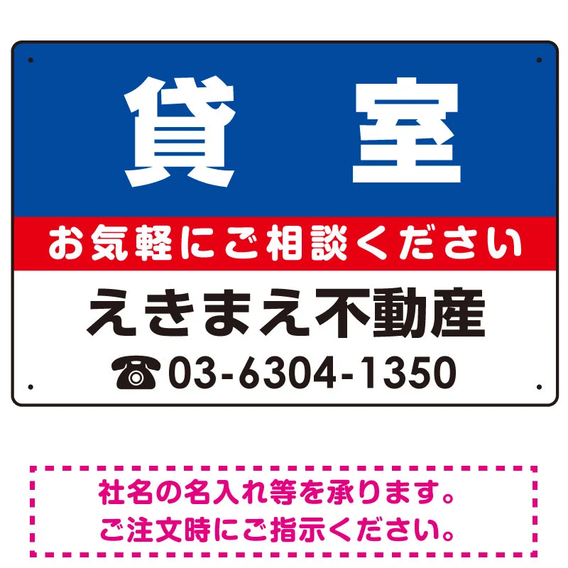 - 貸室 オリジナル プレート看板 青背景 W450×H300 エコユニボード (SP-SMD218-45x30U)