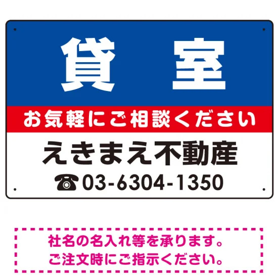 「貸室 オリジナル プレート看板 青背景 W450×H300 エコユニボード (SP-SMD218-45x30U)」の導入をご検討中ですか? 大量注文・複数台のご検討に応じたお見積りのご相談、最短納期や送料、仕様・サイズの確認など、 不動産定番デザインプレート看板選びをまとめてサポートいたします。