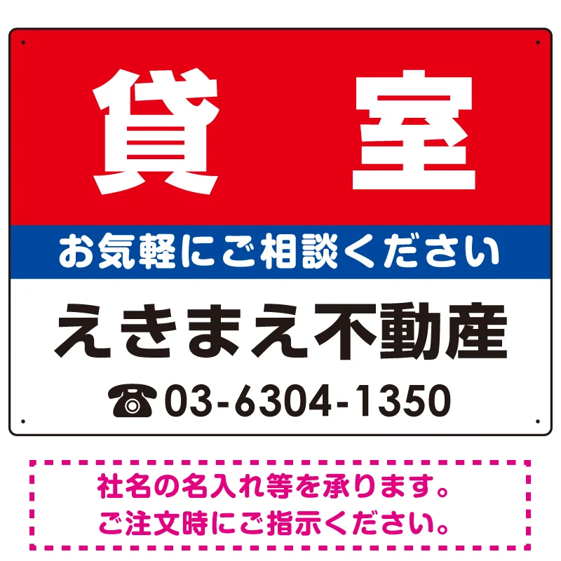 「貸室 オリジナル プレート看板 赤背景 W600×H450 エコユニボード (SP-SMD176-60x45U)」の導入をご検討中ですか? 大量注文・複数台のご検討に応じたお見積りのご相談、最短納期や送料、仕様・サイズの確認など、 不動産定番デザインプレート看板選びをまとめてサポートいたします。