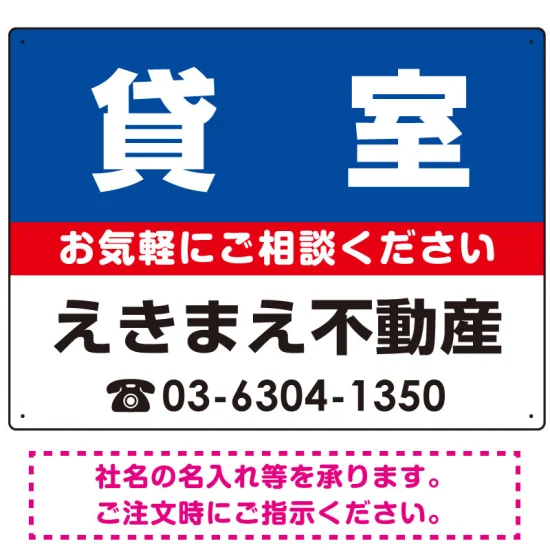 「貸室 オリジナル プレート看板 青背景 W600×H450 エコユニボード (SP-SMD218-60x45U)」の導入をご検討中ですか? 大量注文・複数台のご検討に応じたお見積りのご相談、最短納期や送料、仕様・サイズの確認など、 不動産定番デザインプレート看板選びをまとめてサポートいたします。