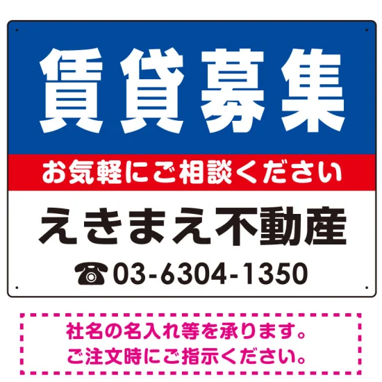賃貸募集 オリジナル プレート看板 青背景 W600×H450 エコユニボード (SP-SMD219-60x45U)