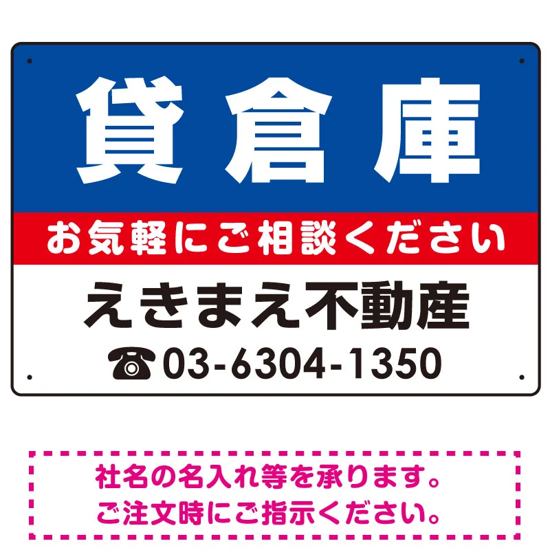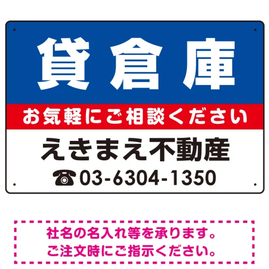 表示内容「貸倉庫」不動産向けプレート看板。